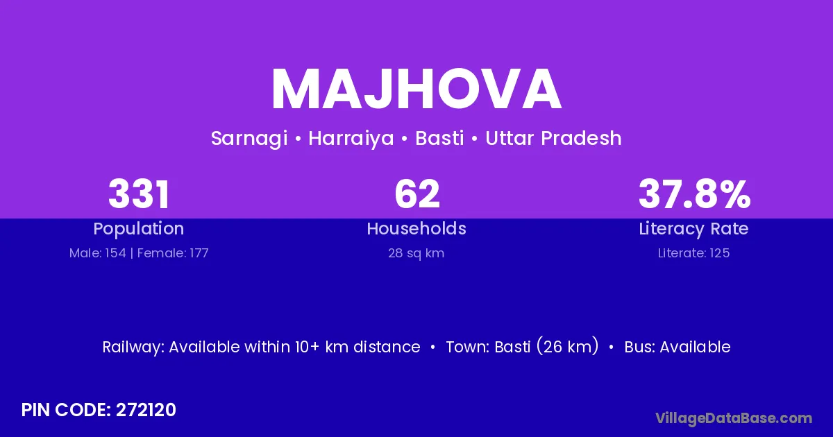 Basti (26 km) is the nearest town to Majhova village for major economic activities and is located approximately 26 km away.