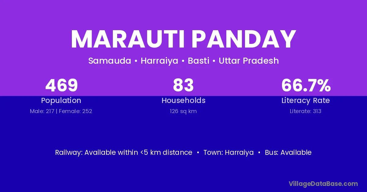 Marauti Panday village has a total population of 469 people, of which 217 are males and 252 are females.