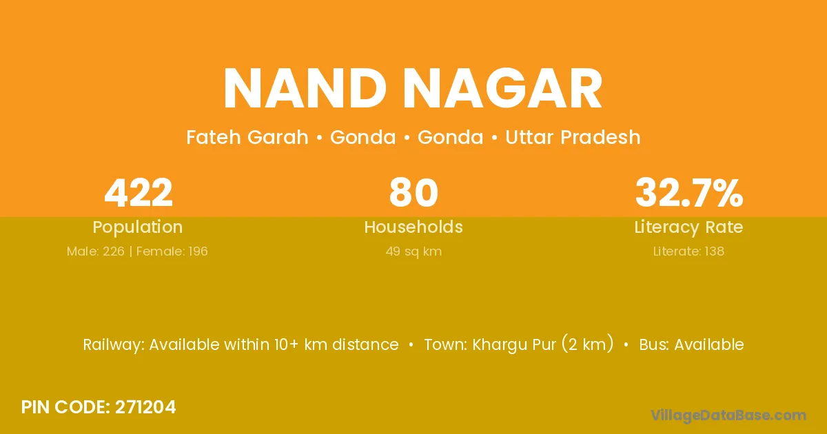 Basti (15 km) is the nearest town to Nand Nagar village for major economic activities and is located approximately 15 km away.