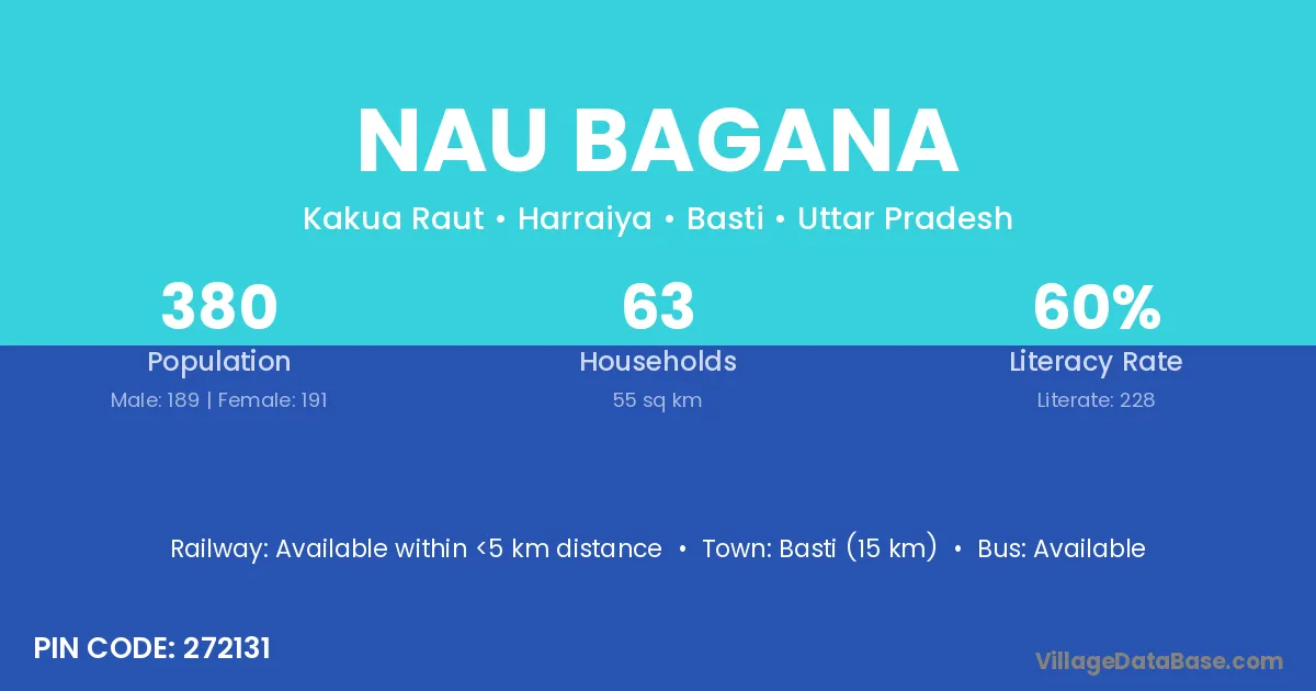 Basti (15 km) is the nearest town to Nau Bagana village for major economic activities and is located approximately 15 km away.