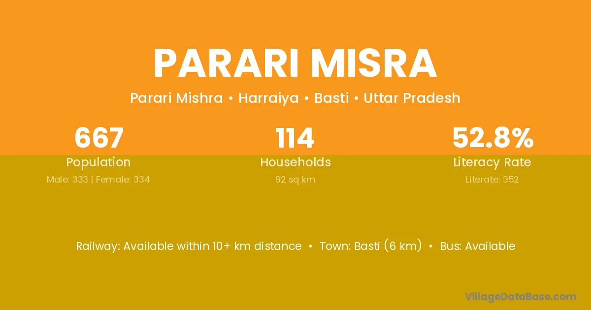 Basti (6 km) is the nearest town to Parari Misra village for major economic activities and is located approximately 6 km away.