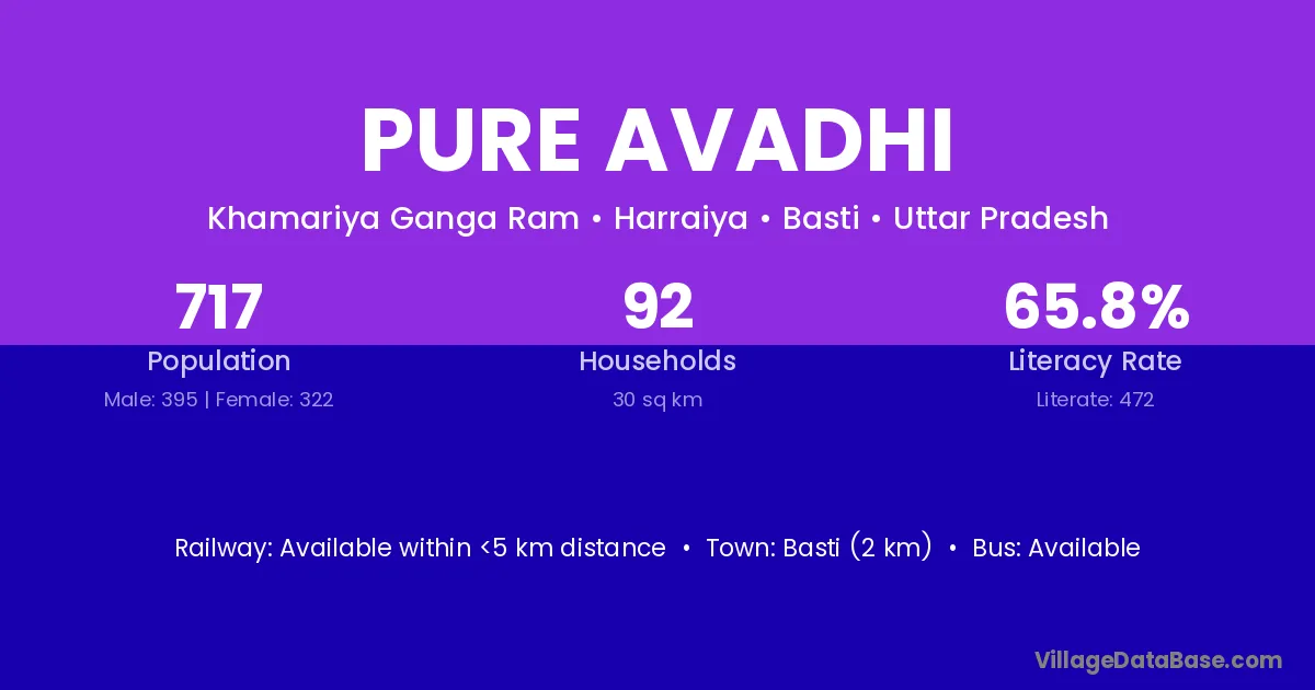 Pure Avadhi village has a total population of 717 people, of which 395 are males and 322 are females.