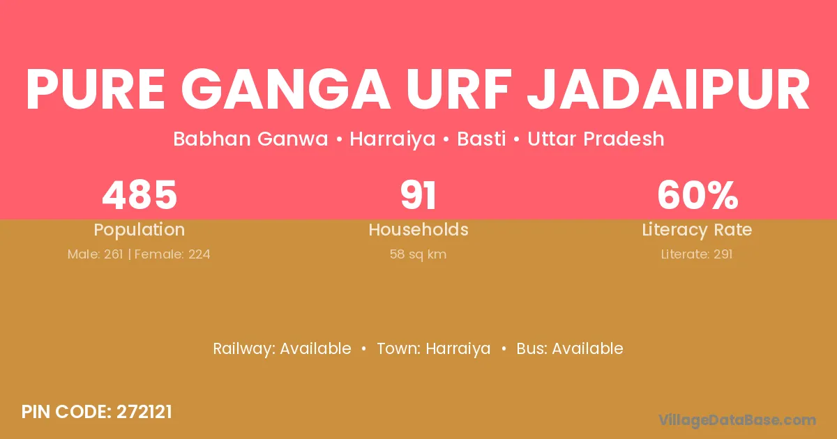 Pure Ganga Urf Jadaipur village has a total population of 485 people, of which 261 are males and 224 are females.