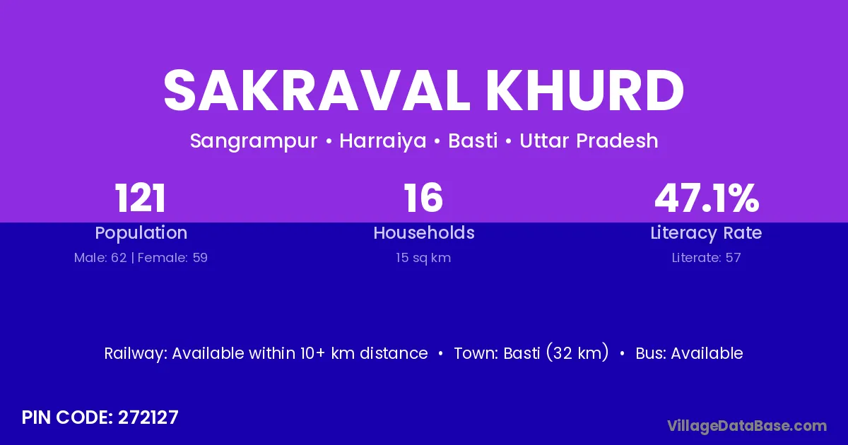 Basti (32 km) is the nearest town to Sakraval Khurd village for major economic activities and is located approximately 32 km away.