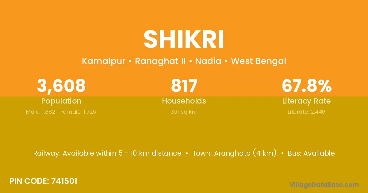 Basti (38 km) is the nearest town to Shikri village for major economic activities and is located approximately 38 km away.