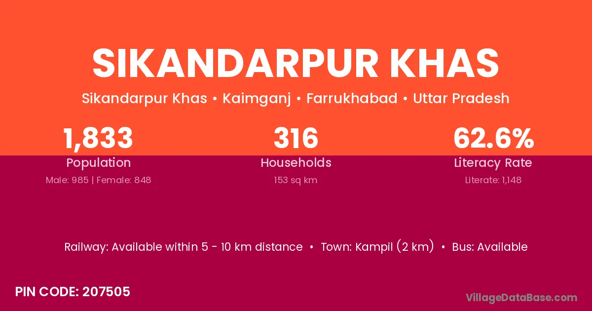 The literacy rate of Sikandarpur Khas village is 58.41%. Male literacy stands at 66.43% and female literacy at 50.10%.