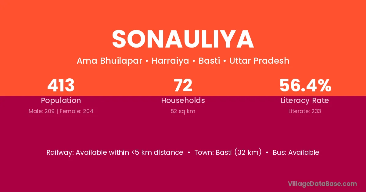 Basti (32 km) is the nearest town to Sonauliya village for major economic activities and is located approximately 32 km away.