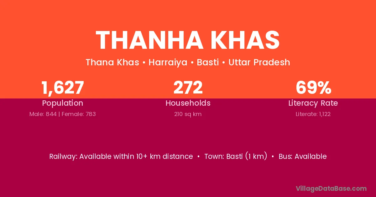 Basti (1 km) is the nearest town to Thanha Khas village for major economic activities and is located approximately 1 km away.