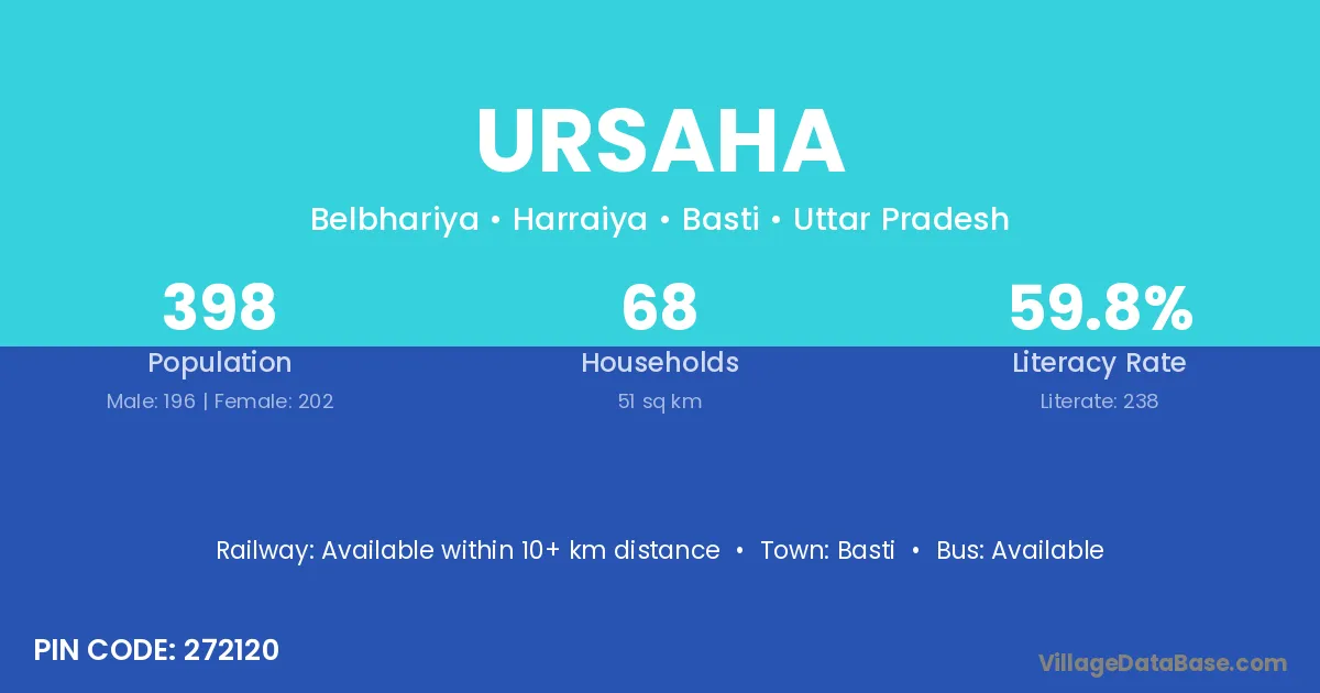 Basti is the nearest town to Ursaha village for major economic activities