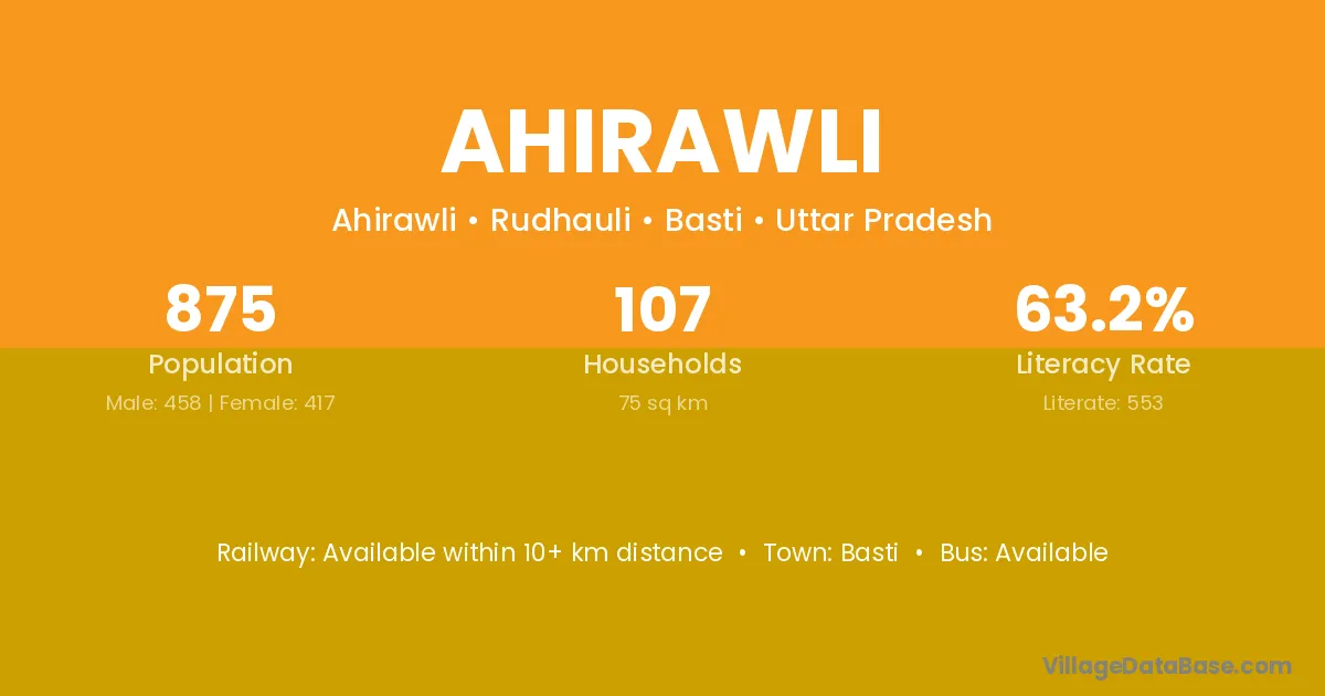 Ahirawli village has a total population of 875 people, of which 458 are males and 417 are females.