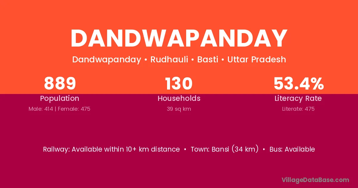 Bansi (34 km) is the nearest town to Dandwapanday village for major economic activities and is located approximately 34 km away.