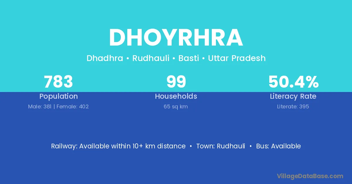 Rudhauli is the nearest town to Dhoyrhra village for major economic activities