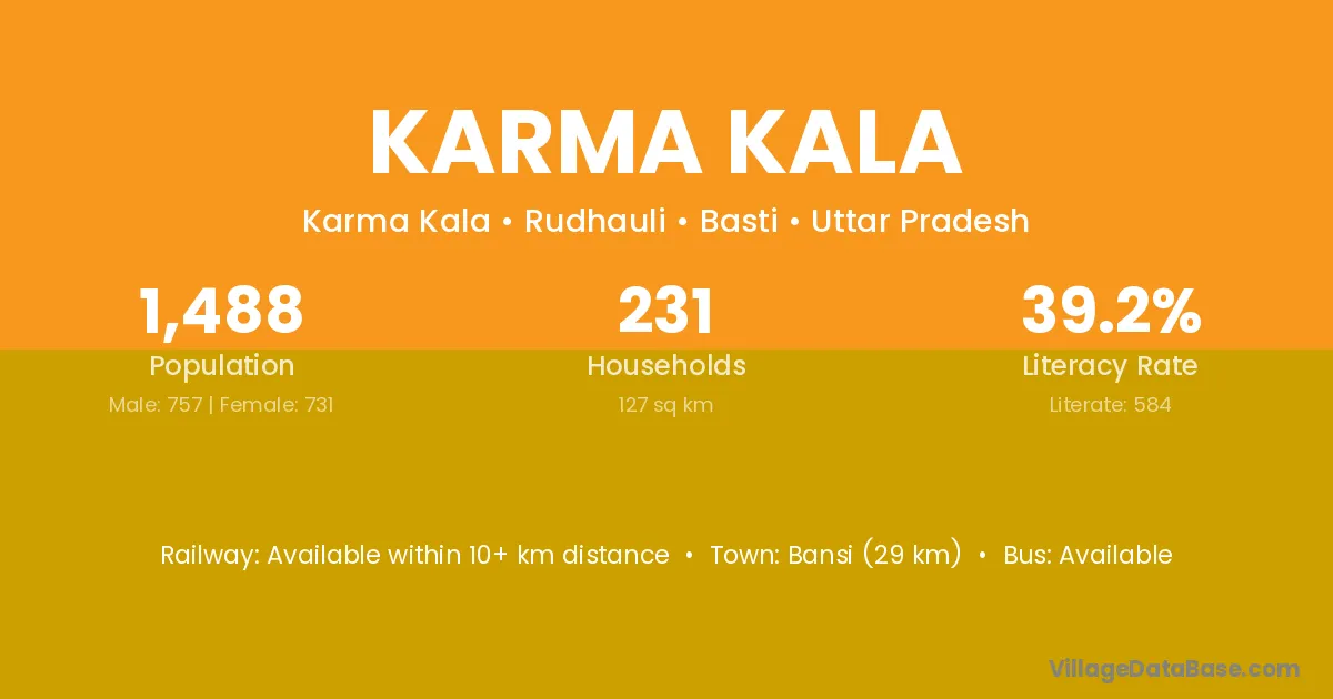 Bansi (29 km) is the nearest town to Karma Kala village for major economic activities and is located approximately 29 km away.