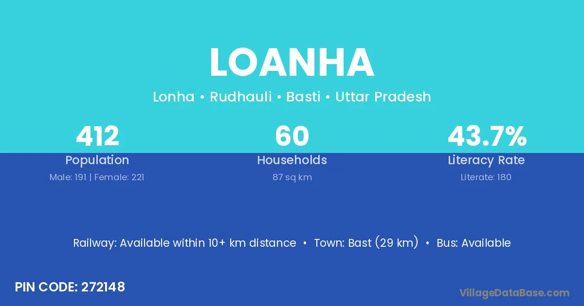 Loanha village has a total population of 412 people, of which 191 are males and 221 are females.