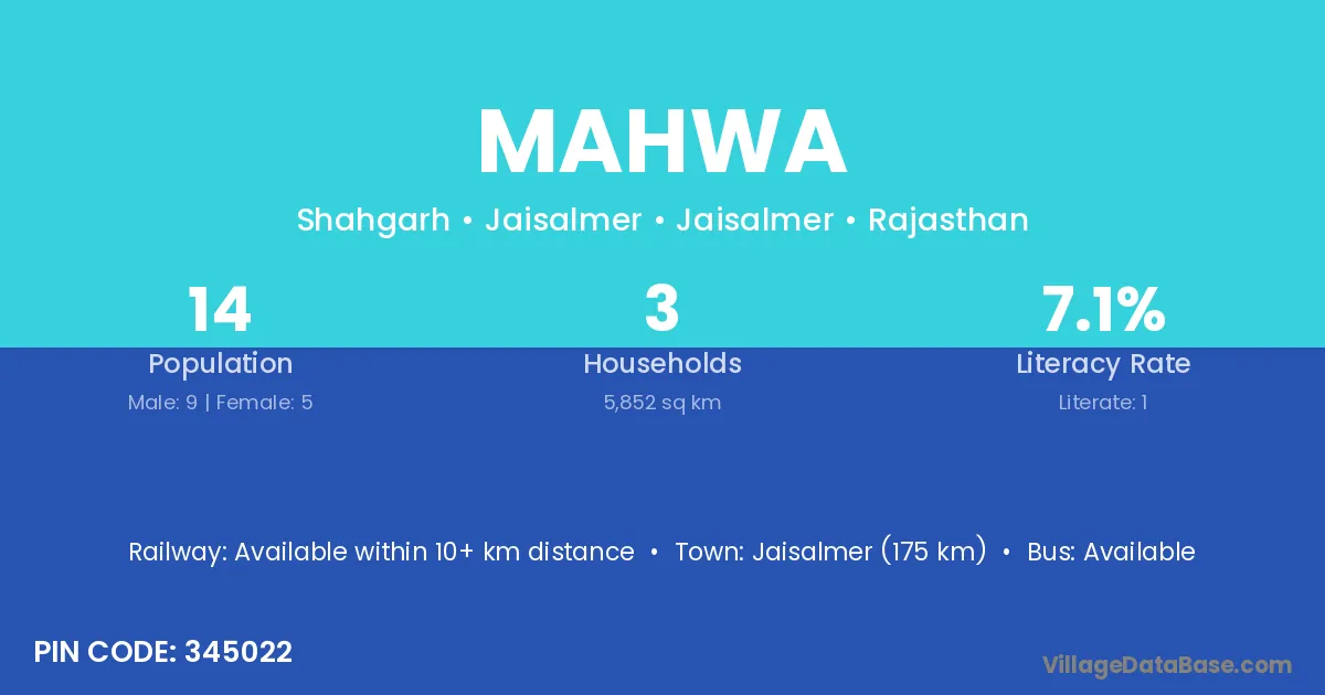 The literacy rate of Mahwa village is 28.49%. Male literacy stands at 35.68% and female literacy at 22.77%.