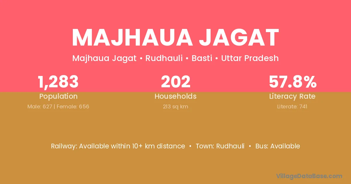 Majhaua Jagat village has a total population of 1,283 people, of which 627 are males and 656 are females.