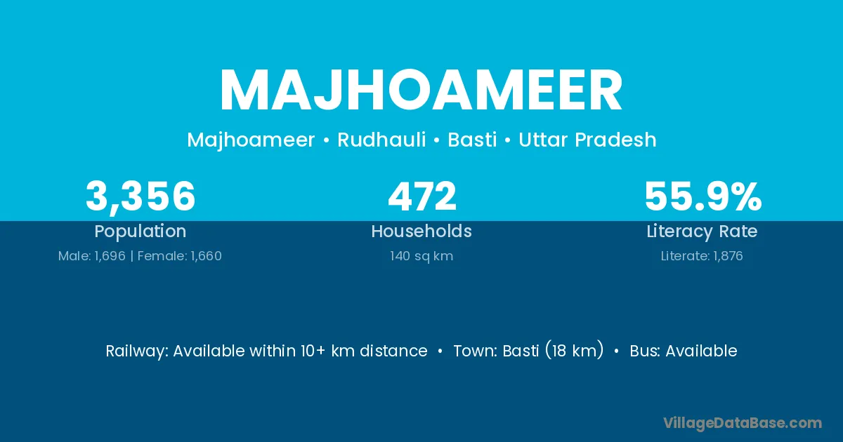 Basti (18 km) is the nearest town to Majhoameer village for major economic activities and is located approximately 18 km away.