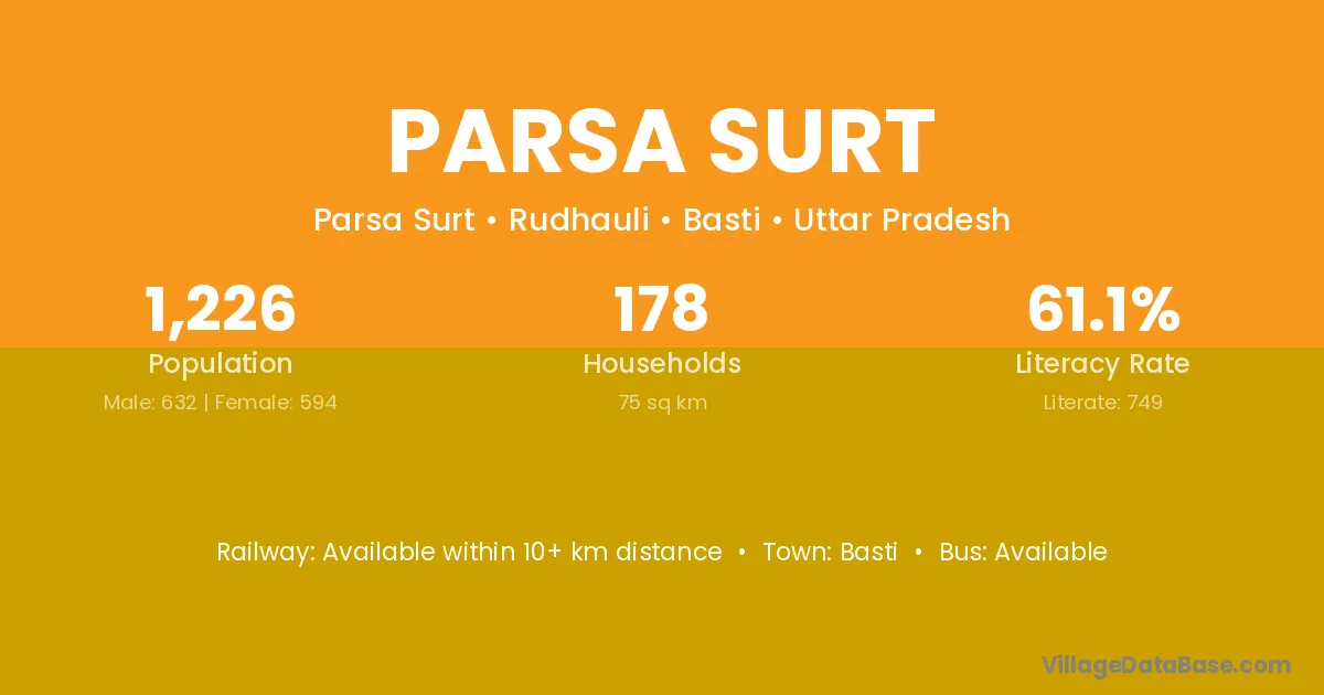 Parsa Surt village has a total population of 1,226 people, of which 632 are males and 594 are females.