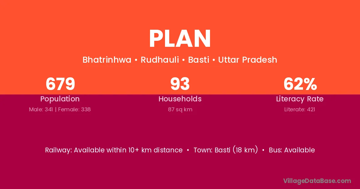 Basti (18 km) is the nearest town to Plan village for major economic activities and is located approximately 18 km away.