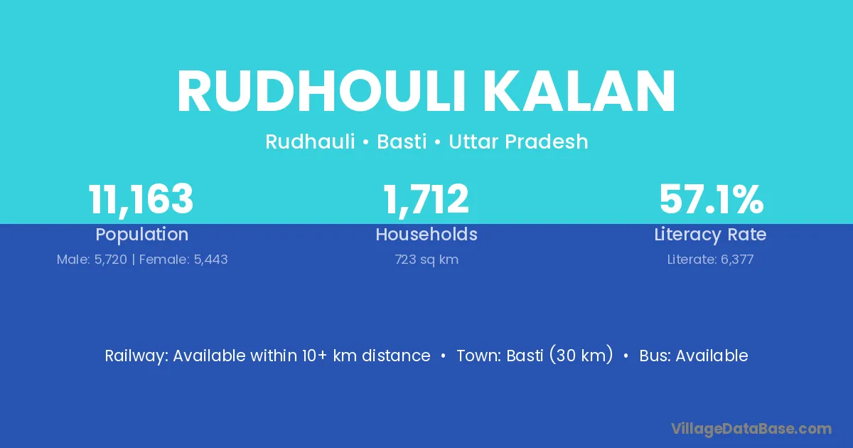 Basti (30 km) is the nearest town to Rudhouli Kalan village for major economic activities and is located approximately 30 km away.