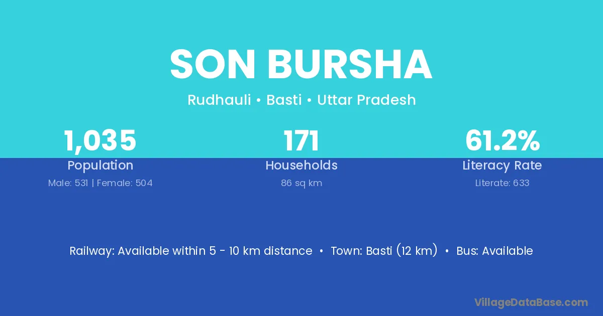 Basti (12 km) is the nearest town to Son Bursha village for major economic activities and is located approximately 12 km away.