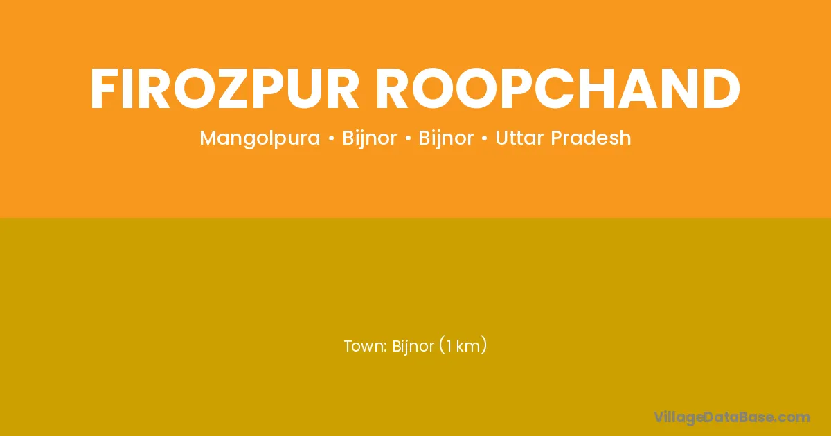 Bijnor (1 km) is the nearest town to Firozpur Roopchand village for major economic activities and is located approximately 1 km away.