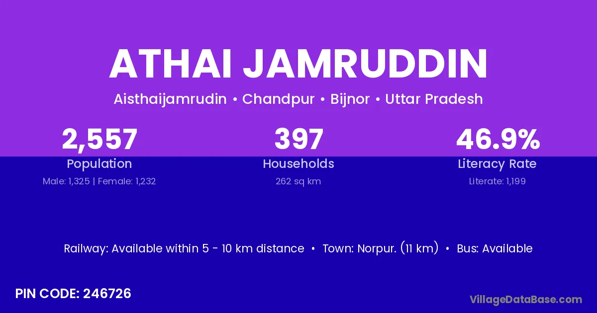 Norpur. (11 km) is the nearest town to Athai Jamruddin village for major economic activities and is located approximately 11 km away.