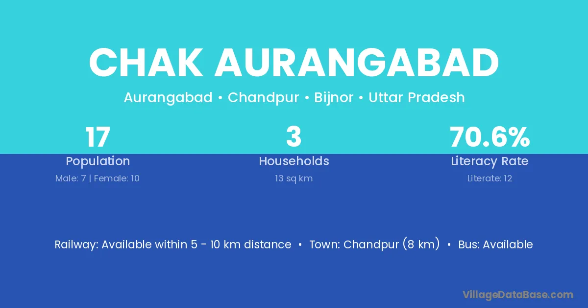 Chandpur (8 km) is the nearest town to Chak Aurangabad village for major economic activities and is located approximately 8 km away.