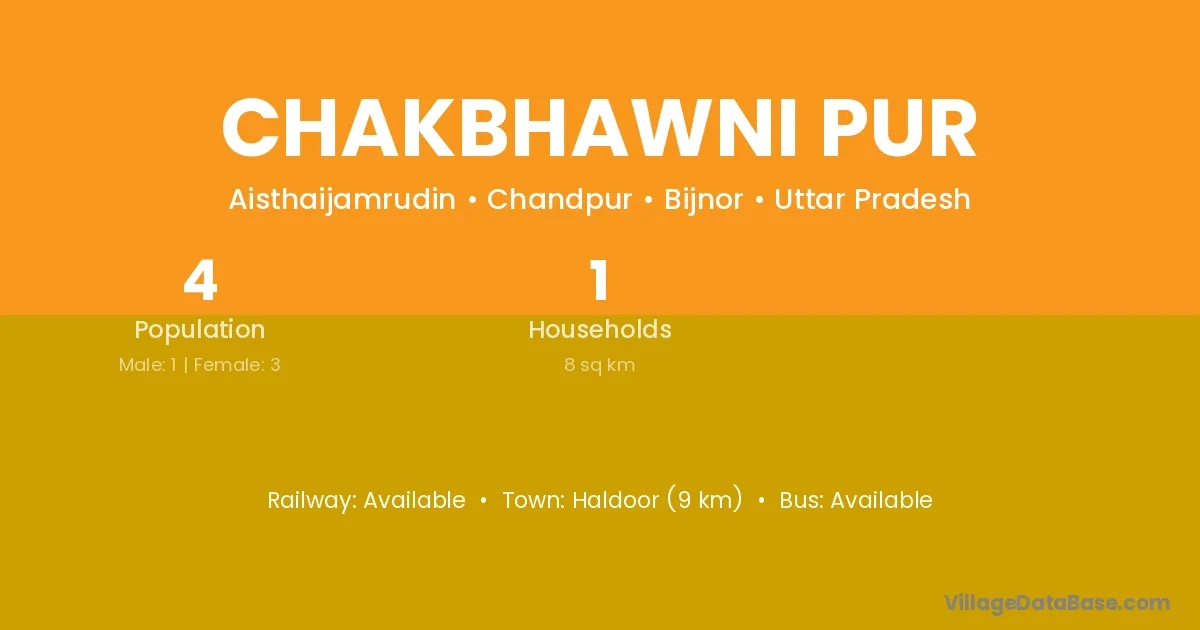 Chakbhawni Pur village has a total population of 4 people, of which 1 are males and 3 are females.