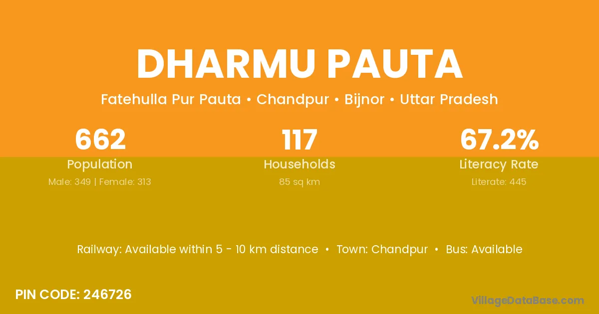 Chandpur is the nearest town to Dharmu Pauta village for major economic activities