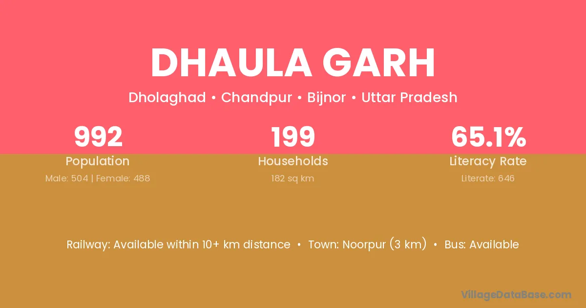 Dhaula Garh village has a total population of 992 people, of which 504 are males and 488 are females.