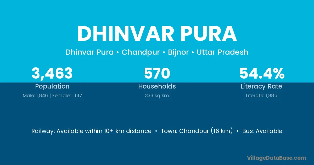 Chandpur (16 km) is the nearest town to Dhinvar Pura village for major economic activities and is located approximately 16 km away.
