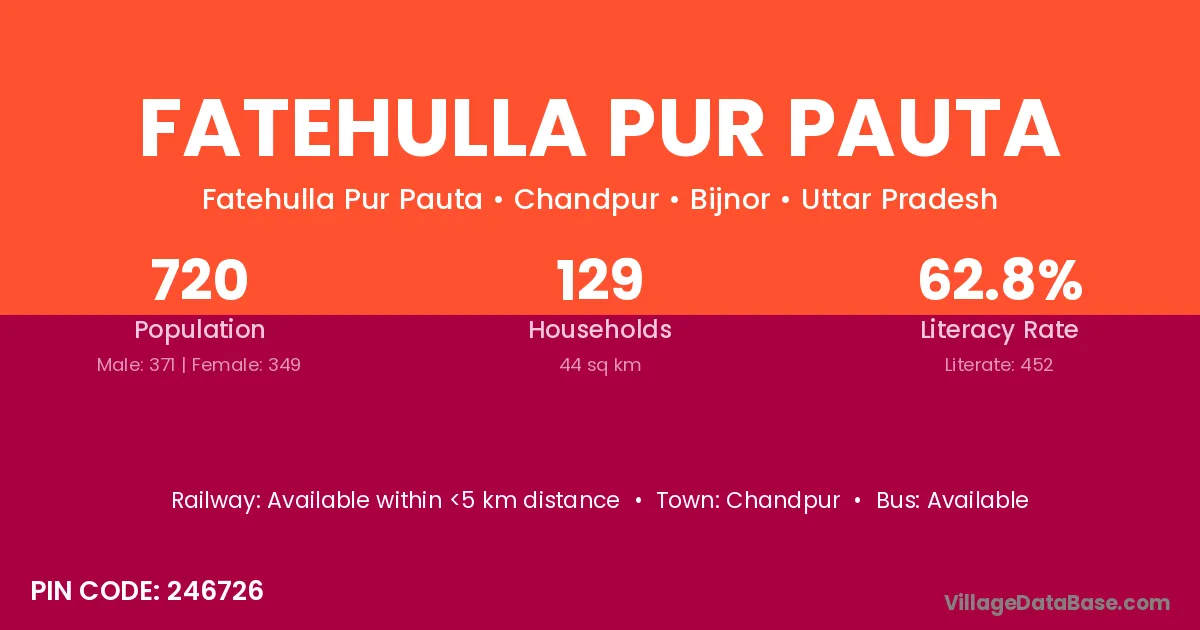 Fatehulla Pur Pauta village has a total population of 720 people, of which 371 are males and 349 are females.