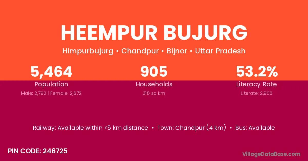 Chandpur (4 km) is the nearest town to Heempur Bujurg village for major economic activities and is located approximately 4 km away.