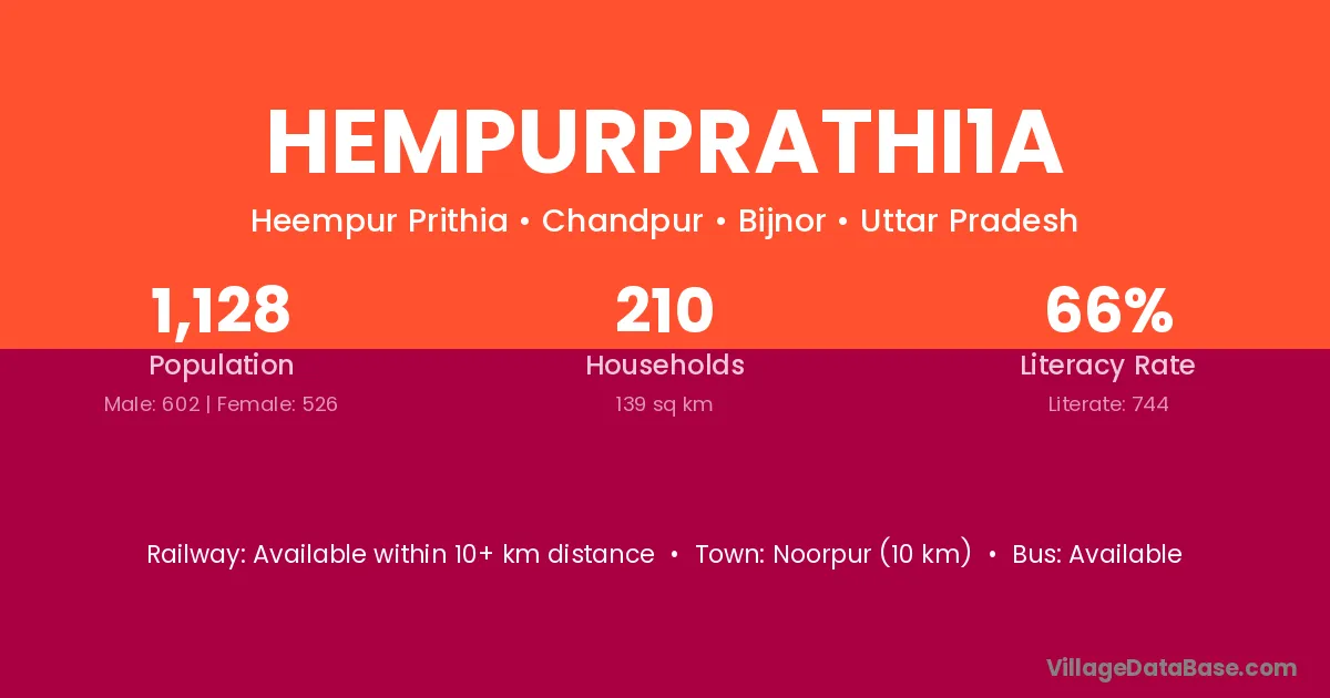 Hempurprathi1a village has a total population of 1,128 people, of which 602 are males and 526 are females.
