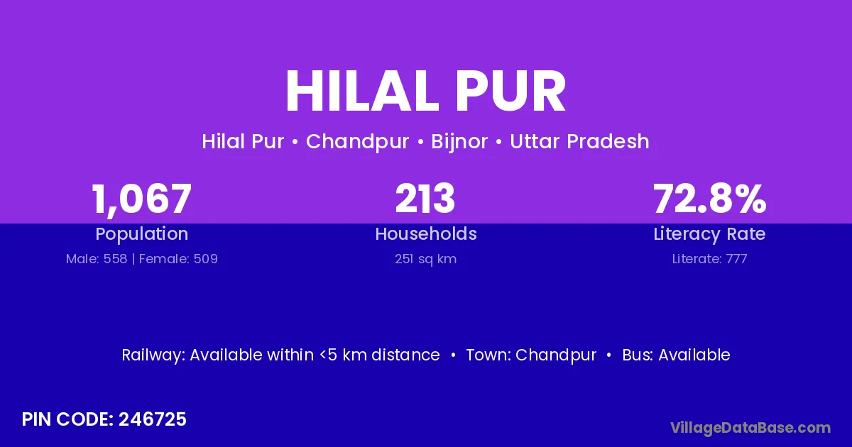 Hilal Pur village has a total population of 1,067 people, of which 558 are males and 509 are females.