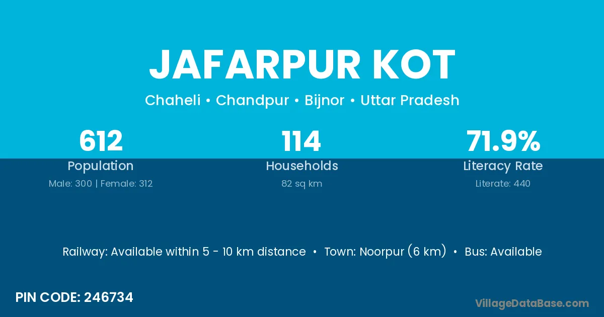 Jafarpur Kot village has a total population of 612 people, of which 300 are males and 312 are females.