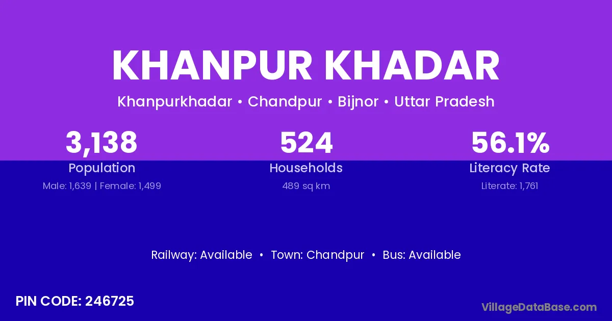 Chandpur is the nearest town to Khanpur Khadar village for major economic activities