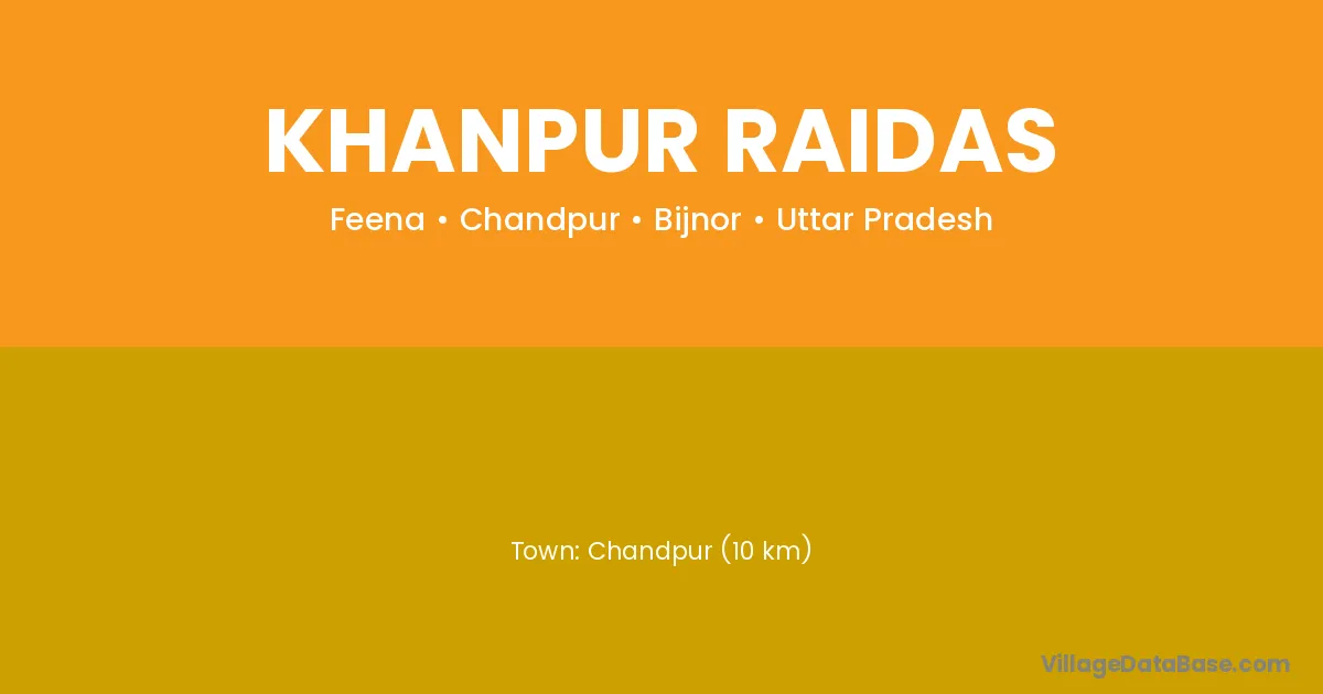 Chandpur (10 km) is the nearest town to Khanpur Raidas village for major economic activities and is located approximately 10 km away.