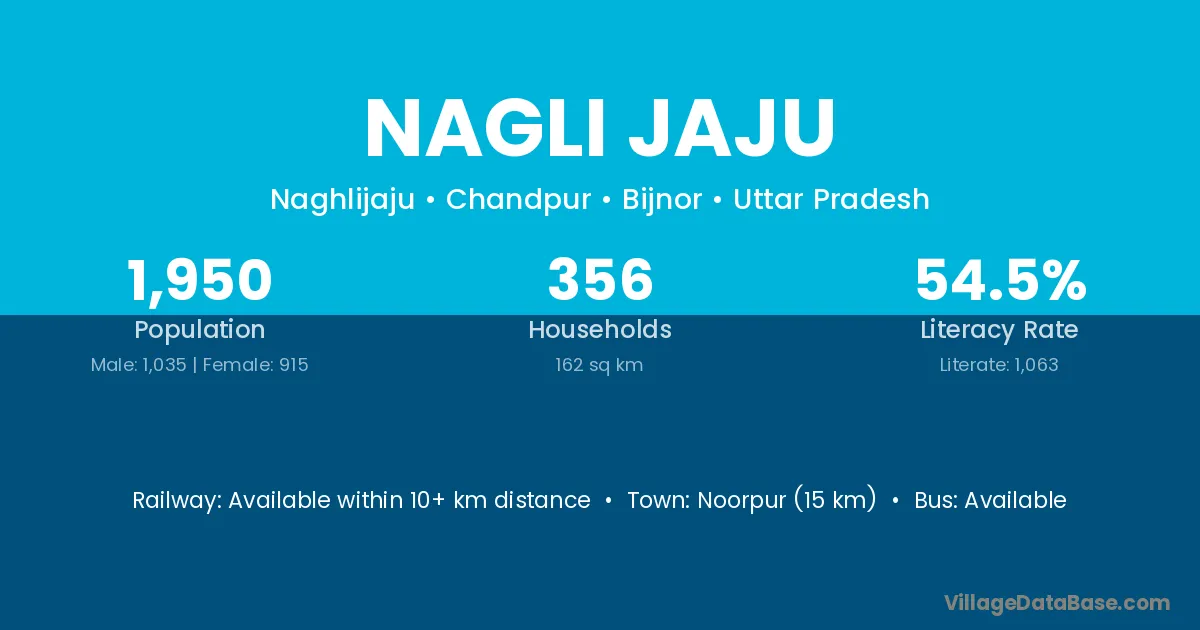 Nagli Jaju village has a total population of 1,950 people, of which 1,035 are males and 915 are females.