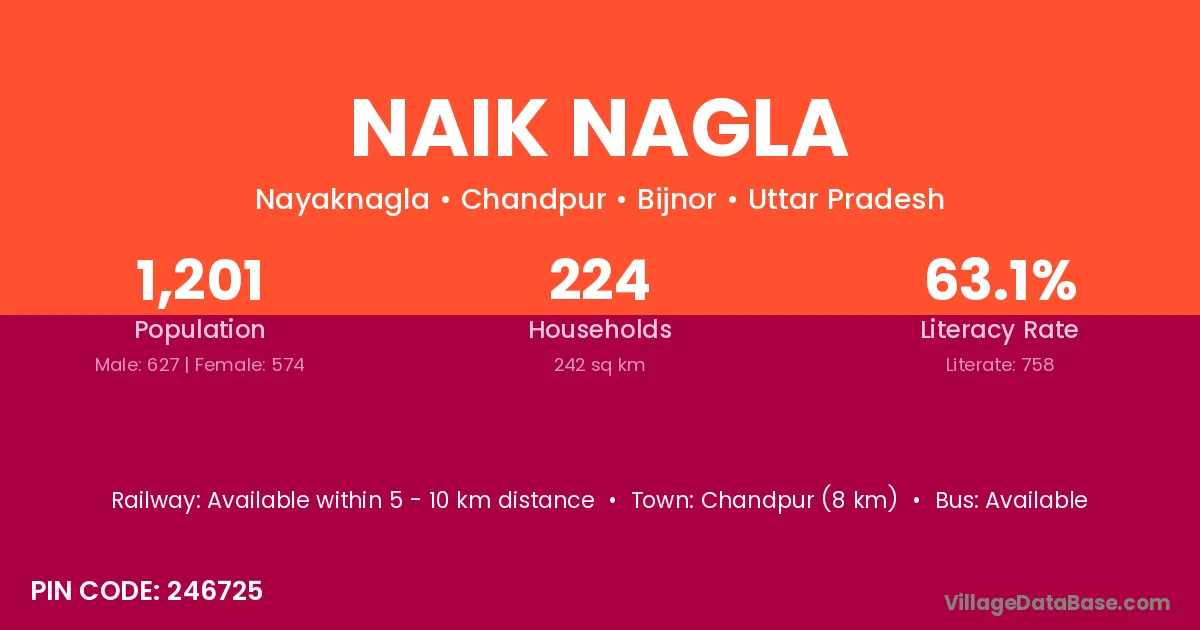 Chandpur (8 km) is the nearest town to Naik Nagla village for major economic activities and is located approximately 8 km away.