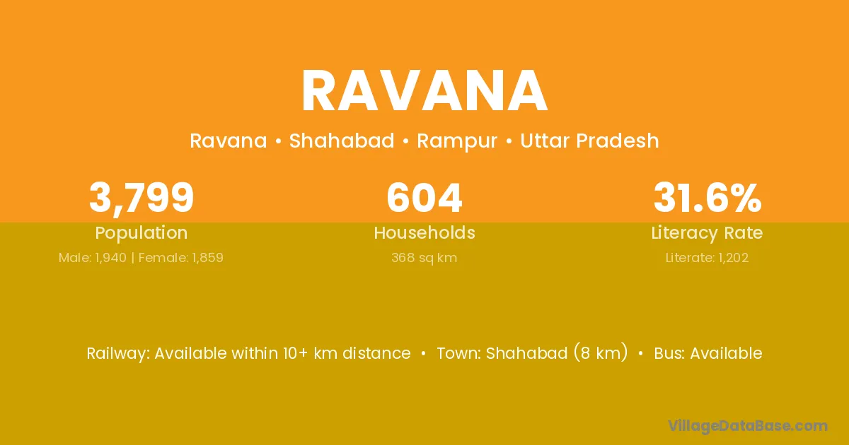 Chandpur (10 km) is the nearest town to Ravana village for major economic activities and is located approximately 10 km away.