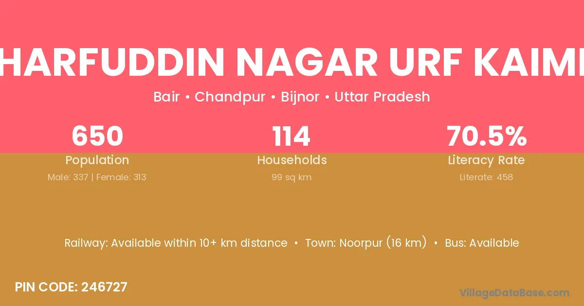 Sharfuddin Nagar Urf Kaimri village has a total population of 650 people, of which 337 are males and 313 are females.