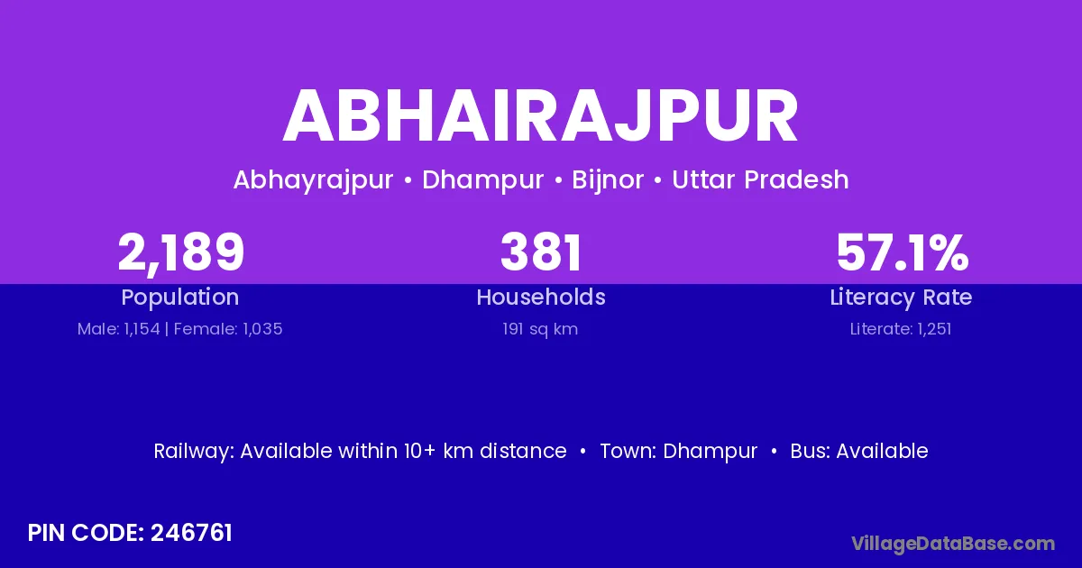 Dhampur is the nearest town to Abhairajpur village for major economic activities
