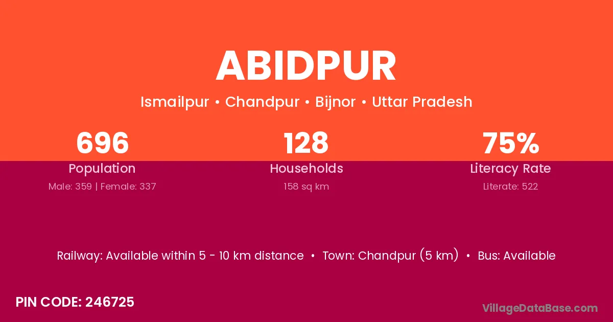 Bijnor is the nearest town to Abidpur village for major economic activities