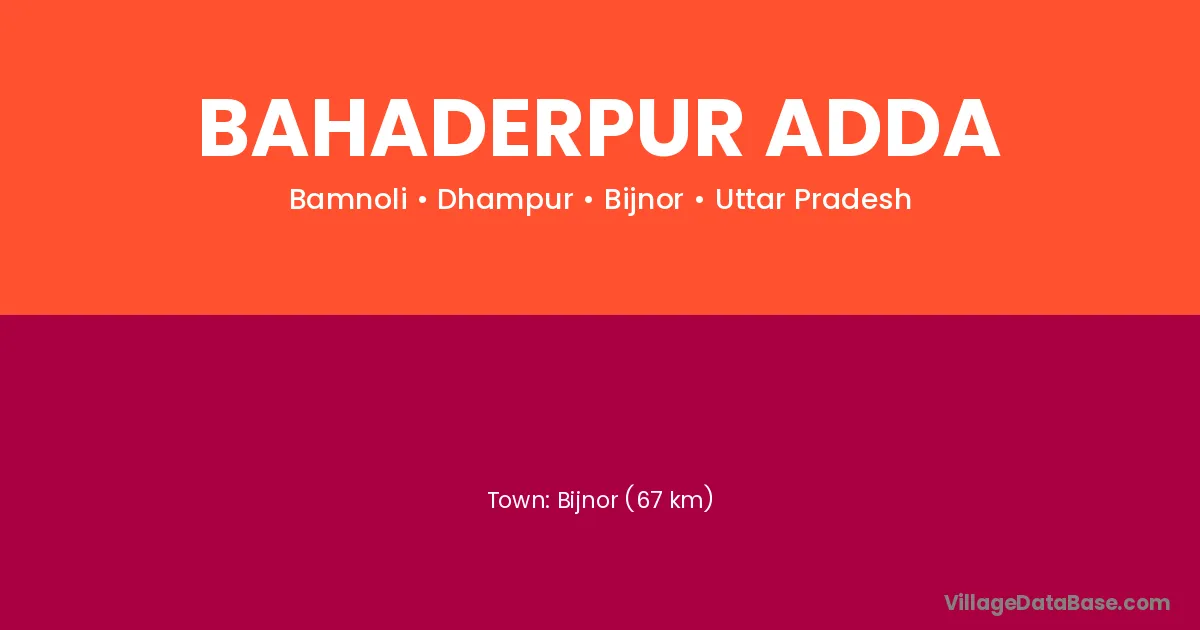 Bijnor (67 km) is the nearest town to Bahaderpur Adda village for major economic activities and is located approximately 67 km away.