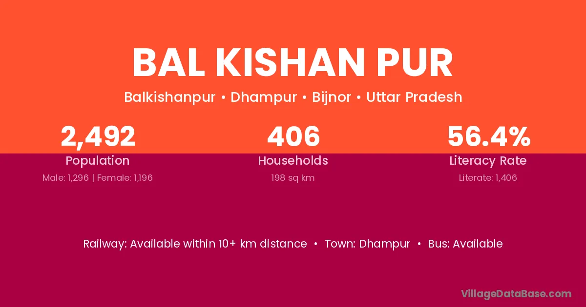 Dhampur is the nearest town to Bal Kishan Pur village for major economic activities