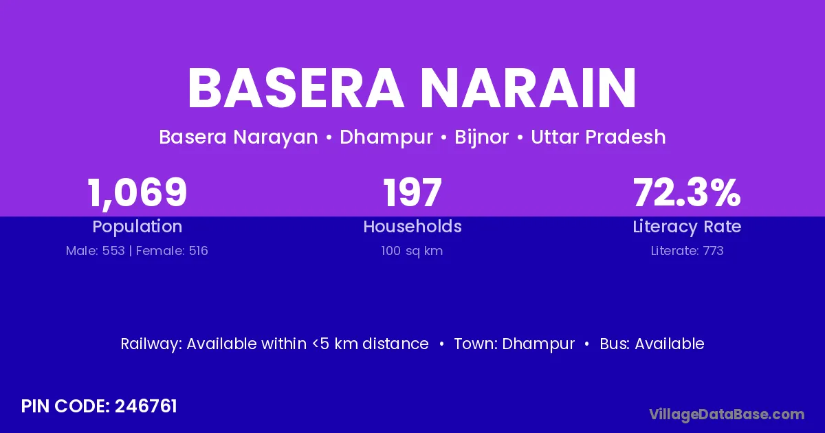 Dhampur is the nearest town to Basera Narain village for major economic activities