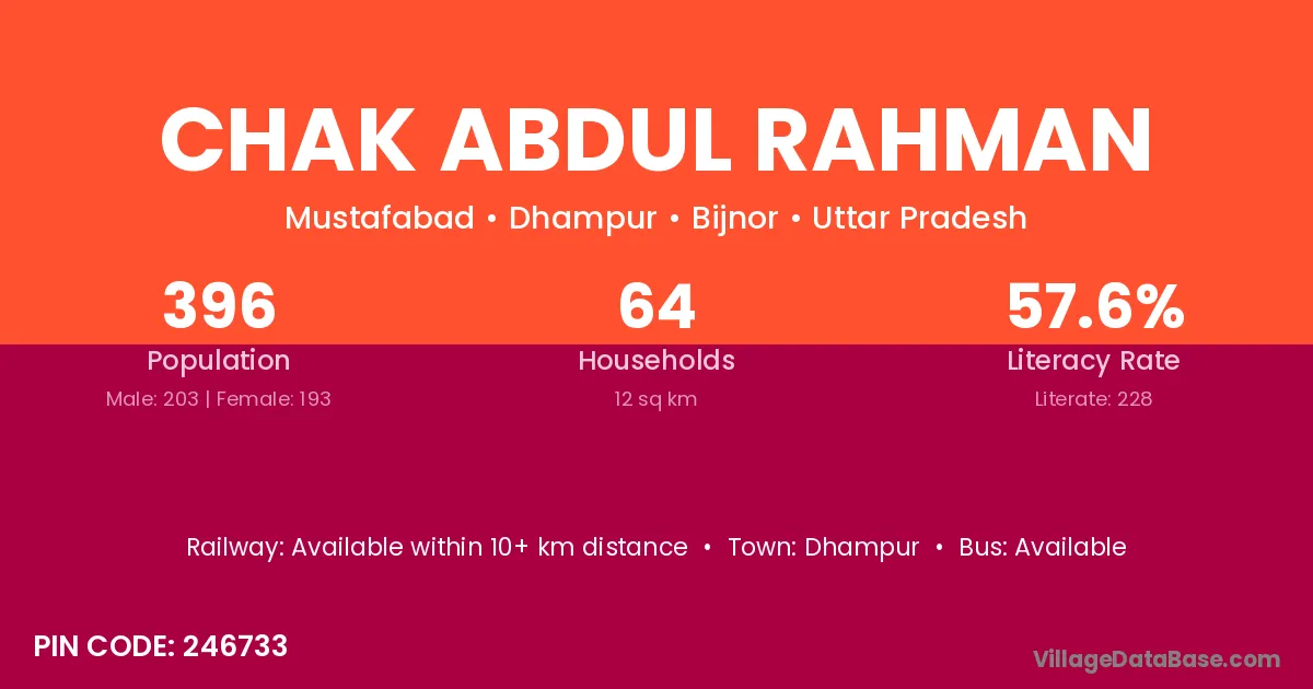 Dhampur is the nearest town to Chak Abdul Rahman village for major economic activities