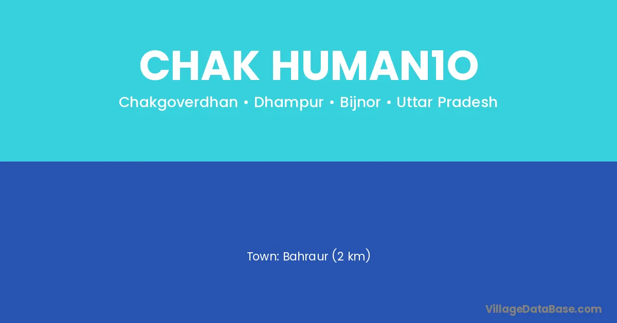 Bahraur (2 km) is the nearest town to Chak Human1o village for major economic activities and is located approximately 2 km away.